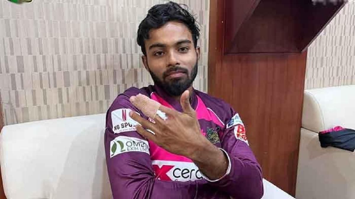 ঢাকার ইনিংসের ১২তম ওভারে বোলার ছিলেন রেজাউর রাজা। সেই ওভারে পয়েন্টে ফিল্ডিং করছিলেন তিনি। রান বাঁচাতে গিয়ে আঙুলে আঘাত পান সে সময়।