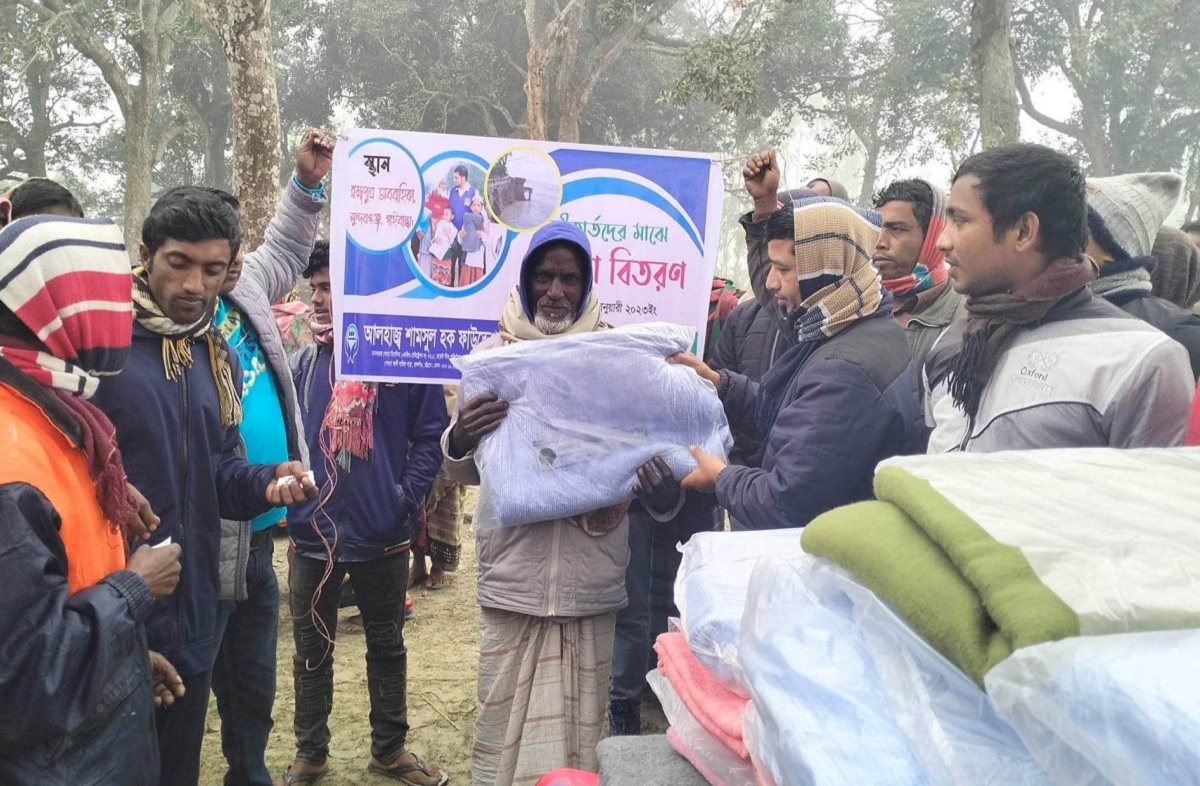 শীতে জবুথবু উত্তরাঞ্চলের গাইবান্ধার ব্রহ্মপুত্র নদ অববাহিকায় কম্বল বিতরণ করেছে চট্টগ্রামের আলহাজ্ব শামসুল হক ফাউন্ডেশন।