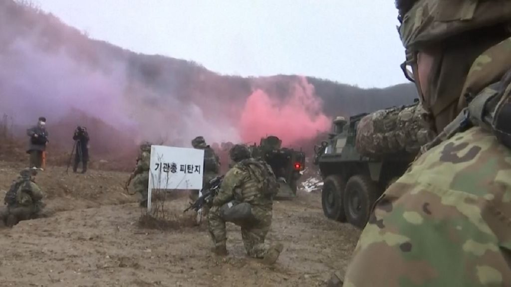 উত্তর কোরিয়ার সাথে উত্তেজনার মধ্যেই সামরিক শক্তিমত্তা দেখালো যুক্তরাষ্ট্র ও দক্ষিণ কোরিয়া। শুক্রবার (১৩ জানুয়ারি) দুই কোরিয়ার সীমান্তবর্তী পাজু এলাকায় যৌথ মহড়ায় অংশ নেয় দুই দেশ। খবর এপির।