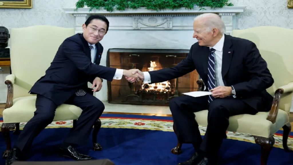 শুক্রবার (১৩ জানুয়ারি) হোয়াইট হাউজে বৈঠকে বসেন বাইডেন-ফুমিও। বাইডেনের জাপান সফরের বছর না পেরোতেই ফের আলোচনার টেবিলে দুই রাষ্ট্রপ্রধান। হংকং ও তাইওয়ান ইস্যুতে বেইজিংয়ের সাথে বিবাদের মাঝেই ওয়াশিংটন-টোকিওর এই ঘোষণায় নতুন করে উত্তেজনার পারদ চড়েছে। বৈঠকে দ্বিপাক্ষিক সম্পর্কোন্নয়নের নানা ইস্যুতে আলোচনা হলেও সবচেয়ে বেশি গুরুত্ব পায় তাইওয়ানে চীনের তৎপরতার বিষয়টি। পাশপাশি উত্তর কোরিয়ার ক্ষেপণাস্ত্র কর্মসূচিও উঠে আসে বৈঠকে।