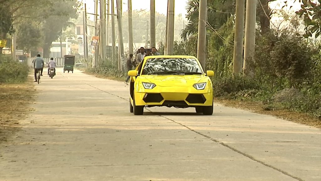 কোটি টাকার এ গাড়ি ময়মনসিংহের মাসকান্দা এলাকায় একটি গ্যারেজে তৈরি করা হয়েছে। আব্দুল আজিজ নামে একজন মোটর মেকানিক দেড় বছরের চেষ্টায় ল্যাম্বরগিনির আদলে তৈরি করেন গাড়িটি।