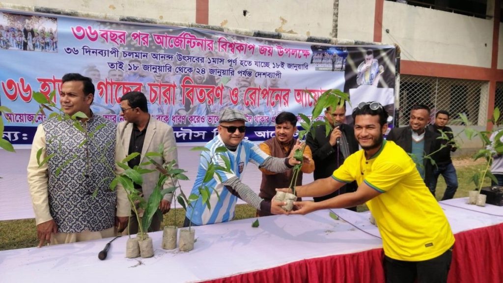 ৩৬ বছর পর আর্জেন্টিনার বিশ্বকাপ জয় উপলক্ষে নোয়াখালীর সূবর্ণচরে ৩৬ হাজার গাছের চারা বিতরণ করেছেন আর্জেন্টিনা ফুটবল দলের সমর্থকরা।
