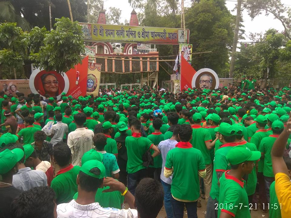 বৃষ্টি উপেক্ষা করে নেতাকর্মীর ভিড়