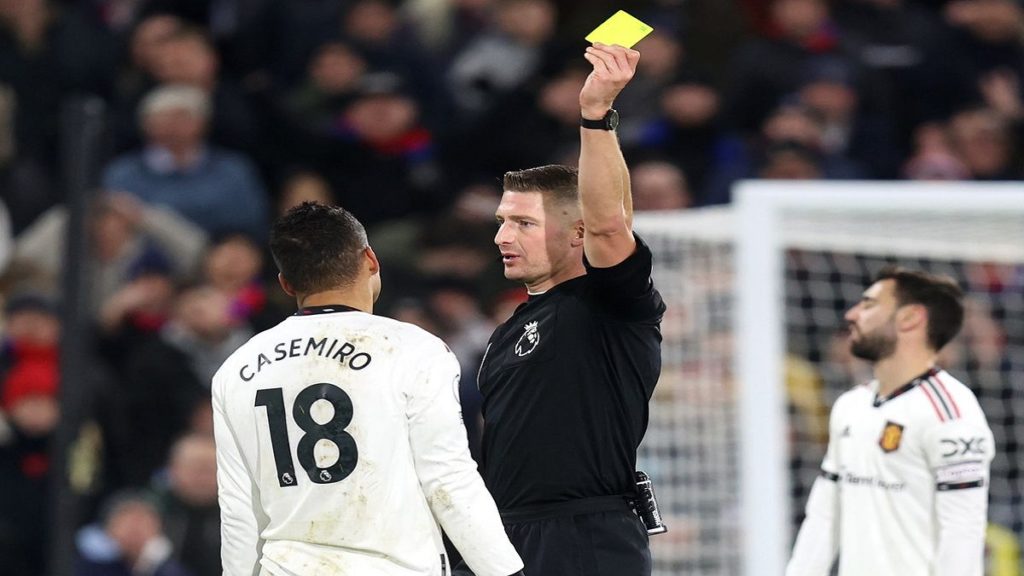 পাঁচ হলুদ কার্ড দেখায় ইংলিশ প্রিমিয়ার লিগের হাইভোল্টেজ ম্যাচে আর্সেনালের বিপক্ষে ব্রাজিলিয়ান মিডফিল্ডার ক্যাসেমিরোকে পাবে না ম্যানচেস্টার ইউনাইটেড। গেলো রাতে ক্রিস্টাল প্যালেসের সাথে ১-১ গোলে ড্র করে পয়েন্ট হারিয়েছে ম্যানইউ। প্রথমার্ধ্বে ব্রুনো ফার্নান্দেজের গোলে রেড ডেভিলরা এগিয়ে গেলেও শেষ মুহূর্তে ওলিসের দুর্দান্ত ফ্রি-কিক গোলে পয়েন্ট ভাগাভাগি করে দুই দল। সেই সাথে যোগ হয়েছে পরের ম্যাচের শঙ্কা।