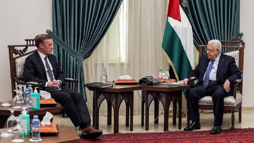 ইসরায়েলি আগ্রাসন বন্ধে জরুরি ভিত্তিতে মার্কিন হস্তক্ষেপের আহ্বান করেছে ফিলিস্তিন। বৃহস্পতিবার (১৯ জানুয়ারি) রামাল্লায় হোয়াইট হাউসের নিরাপত্তা উপদেষ্টা জ্যাক সুলিভানের সাথে বৈঠকে এ আহ্বান জানান প্রেসিডেন্ট মাহমুদ আব্বাস। খবর আল জাজিরার।