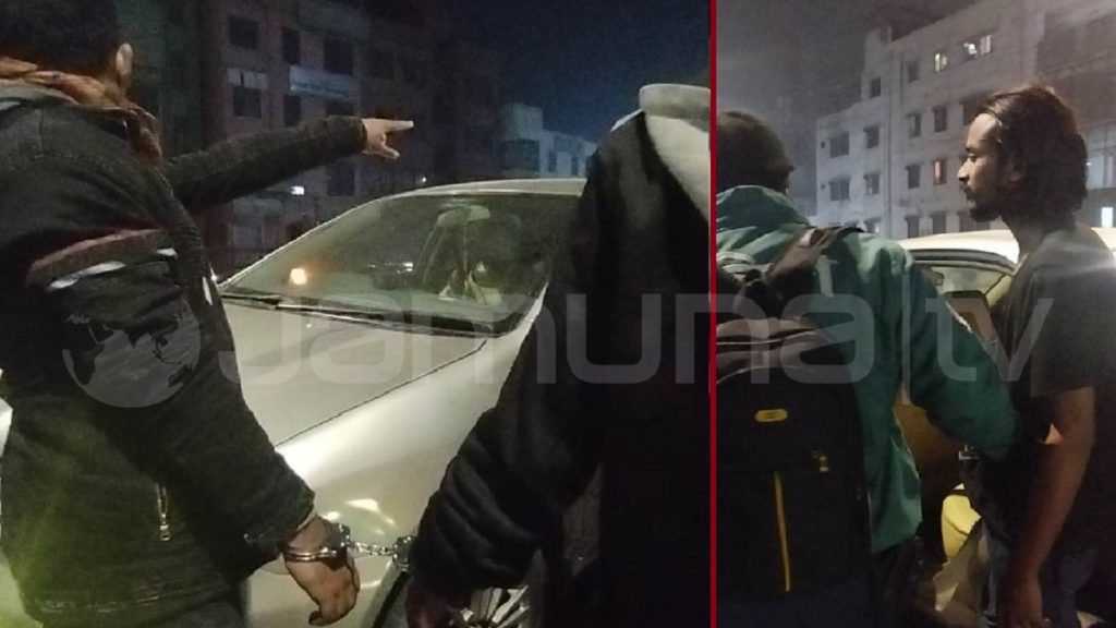 শুক্রবার (২১ জানুয়ারি) দিবাগত রাত সোয়া দুইটায় ঘটে এ ঘটনা। রাজধানীর মহাখালী ফ্লাইওভারের ওপর থেমে ছিল কয়েকটি গাড়ি। ওই পথ দিয়ে যাওয়া যমুনা টেলিভিশনের গাড়ি দেখেই থামার আহ্বান জানায় জটলা করে থাকা কিছু সংখ্যক মানুষ। সেখানেই দেখা মেলে হ্যান্ডকাফ পরিহিত দুই ব্যক্তির। একজনের নাম শহীদুল ইসলাম, অপরজনের রিয়াজ। সম্পর্কে তারা মামা-ভাগ্নে। তাদের অভিযোগ, বিমানবন্দর এলাকা থেকে গাড়ি ভাড়া করে যাচ্ছিলেন তারা। ফ্লাইওভারে উঠতেই তাদের গাড়ির গতিরোধ করে পেছন থেকে আসা আরেকটি গাড়ি। আরোহী চার ব্যক্তি র্যাব পরিচয়ে অস্ত্র দেখিয়ে তুলে নিয়ে যেতে চেয়েছিল তাদের। এক পর্যায়ে হ্যান্ডকাফ পরিয়ে করে মারধর। সন্দেহ হওয়ায় চিৎকার শুরু করেন ভুক্তভোগীরা।