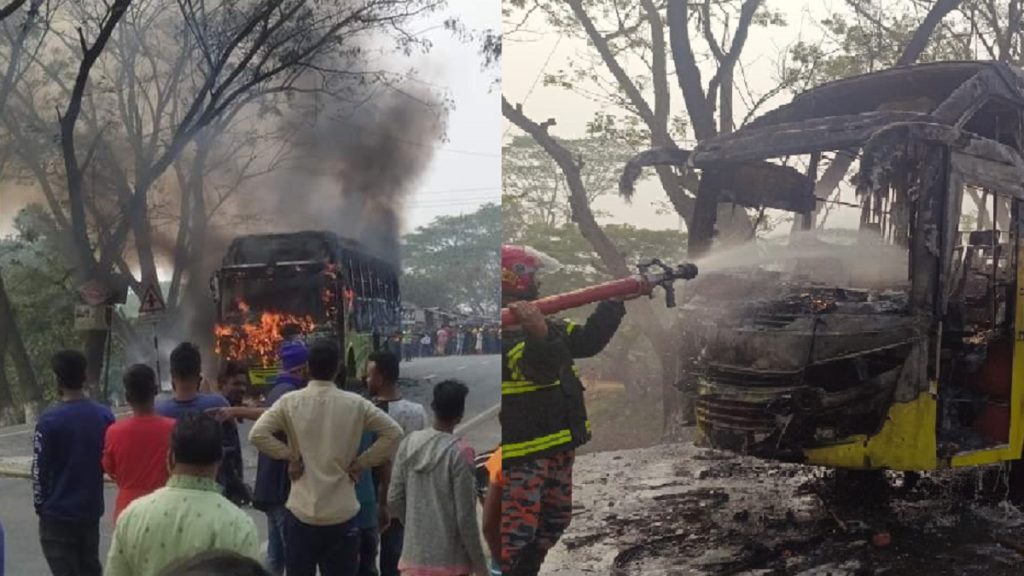 এদিকে, এ ঘটনার পর এলাকার বিক্ষুব্ধ জনতা সড়ক অবরোধ করে ঘাতক বাসে আগুন ধরিয়ে দেন। খবর পেয়ে ভাঙ্গা থানা ও হাইওয়ে পুলিশ ঘটনাস্থলে পৌঁছে পরিস্থিতি নিয়ন্ত্রণে আনেন।