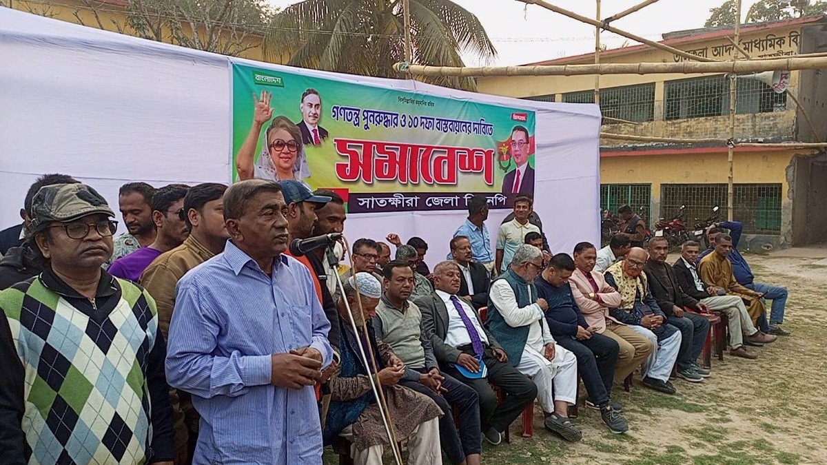 বুধবার (২৫ জানুয়ারি) বিকেল ৫টায় শহরের তালতলা স্কুল মাঠে গণতন্ত্র পুনরুদ্ধারসহ ১০ দফা বাস্তবায়নের দাবিতে সাতক্ষীরায় বিএনপির সমাবেশ অনুষ্ঠিত হয়েছে। সমাবেশে বক্তারা এমন মন্তব্য করেন।