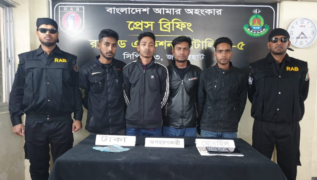 র্যাব জানায়, অপহরণকারীরা ভুক্তভোগীকে অপহরণের উদ্দেশে লালমনিরহাট থেকে একটি প্রাইভেটকার ভাড়া করে নিয়ে জয়পুরহাটে যায়। এরপর চক্রের মূলহোতা ভিকটিমের সাবেক প্রেমিক ও তার তিন সহযোগী ভিকটিমকে জোরপূর্বক ভাড়া করা সেই প্রাইভেটকারে উঠিয়ে নিয়ে যাওয়ার চেষ্টা করে। এসময় জয়পুরহাট র্যাব ক্যাম্পের দায়িত্বরত এফএস সদস্য পাম্পে বাইকের জ্বালানি তেল নিতে যাওয়ার সময় বিষয়টি লক্ষ্য করে এবং কোম্পানি অধিনায়ককে বিষয়টি অবহিত করলে র্যাবের দল ঘটনাস্থলে উপস্থিত হয়ে অপহরণকারী চক্রের হোতাসহ ৪ সদস্যকে আটক ও ভিকটিমকে উদ্ধার করে।