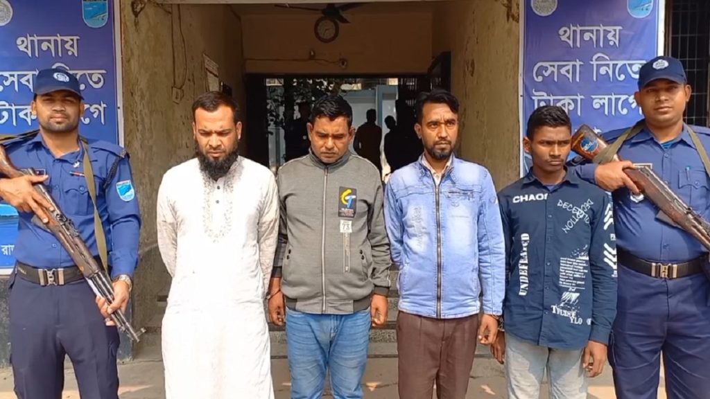 গ্রেফতারকৃতরা হলেন, ফরিদপুর সালথার বড় লক্ষণদিয়ার সিরাজুল ইসলাম মো. মেজবাউল হক (৩৬), কোতয়ালী থানার তাম্বুলখানার মৃত রব হাওলাদারের ছেলে সেলিম হাওলাদার ওরফে সেলিম বাবু হাওলাদার (৪০), যশোর চৌগাছার কুলিয়ার আব্দুর রাজ্জাক মিয়ার ছেলে লিখন মিয়া ওরফে নয়ন (৩০) এবং নরসিংদী শিবপুরের তেলিয়াবাজার এলাকার আলী হোসেনের ছেলে রিফাত হোসেন ওরফে ফালাইনা (২২)।