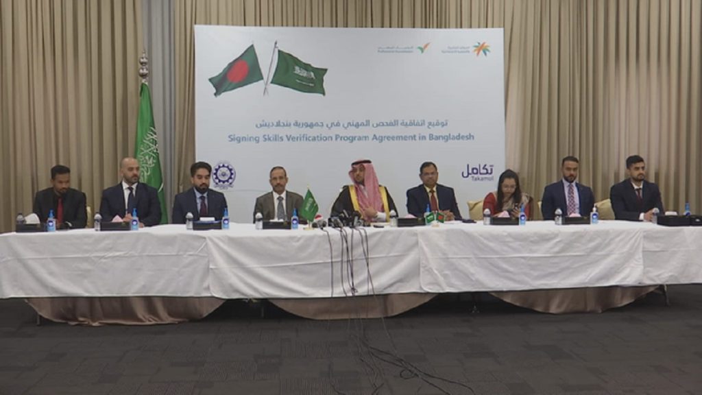 বাংলাদেশ থেকে পাঁচ খাতে পেশাদার দক্ষ কর্মী নেবে সৌদি আরব। এ বিষয়ে ঢাকার সৌদি দূতাবাসে মঙ্গলবার (৭ ফেব্রুয়ারি) জনশক্তি কর্মসংস্থান ও প্রশিক্ষণ ব্যুরোর (বিএমইটি) সাথে দক্ষতা যাচাই কর্মসূচির (এসভিপি) আনুষ্ঠানিক চুক্তি স্বাক্ষর হয়েছে।