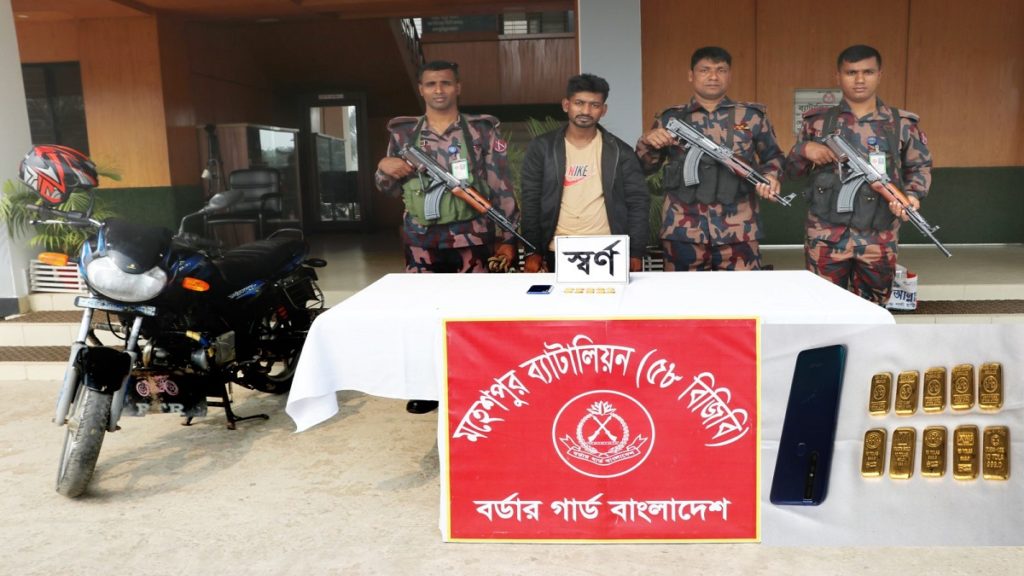 শনিবার বিকালে এক প্রেস ব্রিফিংয়ে ৫৮ বিজিবি’র পিরিচালক মাসুদ পারভেজ রানা জানান, গোপন সংবাদের ভিত্তিতে অভিযান পরিচালনা করা হয়। যাদবপুর সীমান্তের রাজাপুর বাজার থেকে চার’শ মিটার ভেতরে ২টি কচটেপ দিয়ে মোড়ানো অবস্থায় ১০টি সোনার বারসহ মফিজুর রহমান (২৮) নামে এক স্বর্ণ চোরাকারবারিকে আটক করা হয়। যার ওজন ১ কেজি ১৬৬.৪০ গ্রাম। উদ্ধার করা স্বর্ণের বর্তমান বাজার মুল্য ৯২ লক্ষ ৫০ হাজার টাকা।