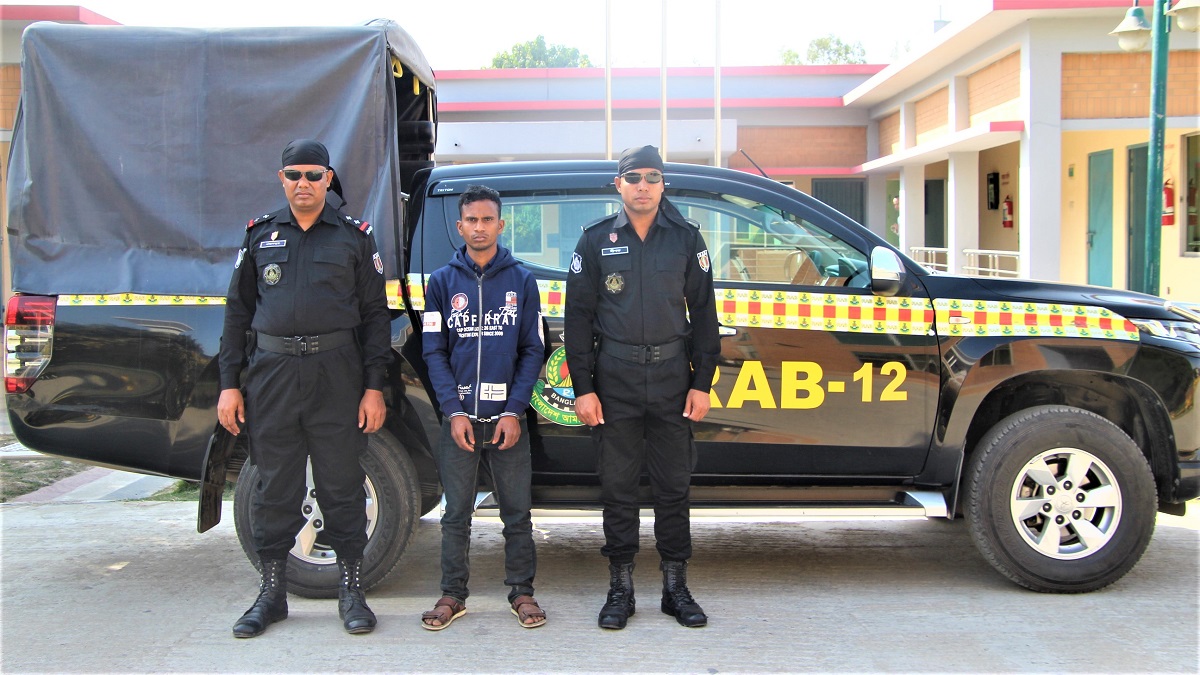 আটক আসামি ঠাকুরগাঁও জেলার হরিপুর থানার টেংরিয়া পশ্চিম ঝাড়বাড়ি এলাকার সাইদুল ইসলামের ছেলে এমদাদুল হক। সোমবার বিকেলে এক সংবাদ বিজ্ঞপ্তিতে এসব তথ্য নিশ্চিত করেছে র্যাব-১২’র ভারপ্রাপ্ত কোম্পানি কমান্ডার সিনিয়র সহকারী পুলিশ সুপার মো. এরশাদুর রহমান।