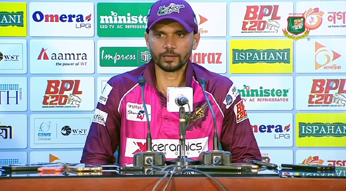 মাশরাফী বলেন, ওখানে যে-ই বোলিং করতো, এরকম ওভার হলে ম্যাচ বেরিয়ে যাবে, এটি খুবই স্বাভাবিক। দিনের সেরা বোলার ছিল রুবেলই। ওই সময় এমন একটা অবস্থা ছিল, রুবেলকে বোলিং দিতে হতো, নয়তো থিসারা পেরেরা কিংবা সাকিব (তানজিম হাসান)। আমি মোটামুটি আত্মবিশ্বাসী ছিলাম, সাকিব আগের ম্যাচে যেভাবে বোলিং করেছে, রাউন্ড দ্য উইকেটে এসে আজকেও ভালো করবে (শেষের দিকে)। কারণ, উইকেটে বল একটু গ্রিপ করছিল।