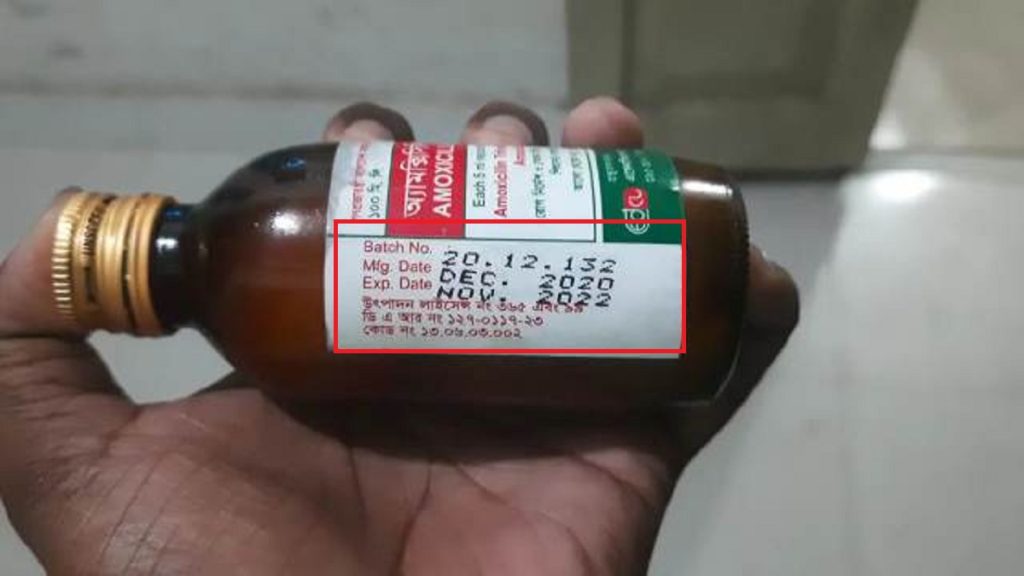 হাসপাতাল থেকে দেয়া অ্যামোক্সিসিলিন ড্রাই সিরাপটিতে দেখা গেছে ২০২২ সালের নভেম্বরে সেটির মেয়াদ শেষ হয়েছে।