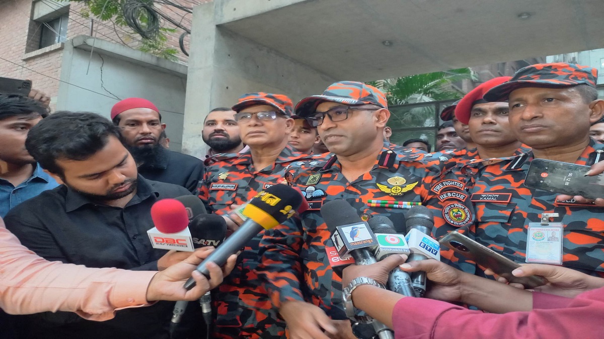 সাংবাদিকদের সাথে মতবিনিময়কালে ফায়ার সার্ভিসের পরিচালক (অপারেশন) ও তদন্ত কমিটির সদস্য লে. কর্নেল তাজুল ইসলাম চৌধুরী।