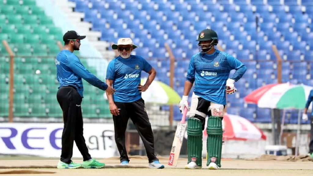 সেটা বুঝতেই হঠাৎ তামিম হাত নেড়ে কাকে যেন ডাকলেন সেন্টার উইকেট থেকে। একটু পরে অধিনায়কের দিকে হাটা দিলেন সাকিব। বোঝা গেলো উইকেট সম্বন্ধে শতভাগ নিশ্চিত হতেই বন্ধুর সরণাপন্ন তামিম। দু’জনে উইকেটে বেশ কিছু সময় কথা বললেন। কথা বলতে বলতে উইকেট ঘুরে ঘুরে দেখেছেন। এক পর্যায়ে তাদের আলোচনা সামিল হয়েছেন কোচ চান্দিকা হাথুরুসিংহেও।