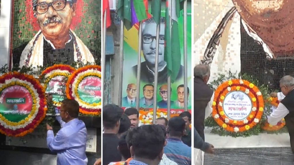 খুলনায় বঙ্গবন্ধুর প্রতিকৃতিতে ফুল দিয়ে শ্রদ্ধা জানায় মুক্তিযোদ্ধা সংসদ, আওয়ামী লীগ ও সহযোগী সংগঠনসহ বিভিন্ন সামাজিক ও সাংস্কৃতিক সংগঠনের নেতাকর্মীরা। গভীর শ্রদ্ধায় স্মরণ করেন জাতির জনককে। এছাড়া দিনটি উপলক্ষে আলোচনা সভা, আলোকচিত্র প্রদর্শনসহ নানা কর্মসূচির আয়োজন করা হয়েছে।