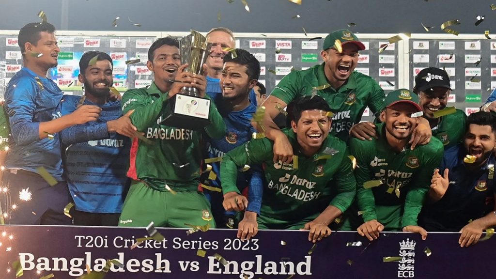 মঙ্গলবার (১৪ মার্চ) মিরপুর শের-ই-বাংলা ক্রিকেট স্টেডিয়ামে তৃতীয় টি-টোয়েন্টিতে ইংল্যান্ডকে ১৬ রানে হারায় বাংলাদেশ। প্রথম টি-টোয়েন্টিতে ৬ উইকেট ও দ্বিতীয় ম্যাচে স্বাগতিকরা জেতে ৪ উইকেটে।