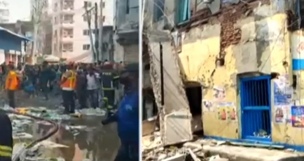 প্রত্যক্ষদর্শীরা জানায়, মার্কেটটি দ্বিতল বিশিষ্ট, উপর তলা পরিত্যক্ত থাকলেও নিচ তলায় রয়েছে ৭টি পাইকারী খাদ্যপণ্যের দোকান। সকালে হঠাৎ সেখানে বিস্ফোরণ হয়। এতে ধসে পড়ে ৩টি দোকানের ছাদ। আগুন ধরে যায় সাথে সাথেই।