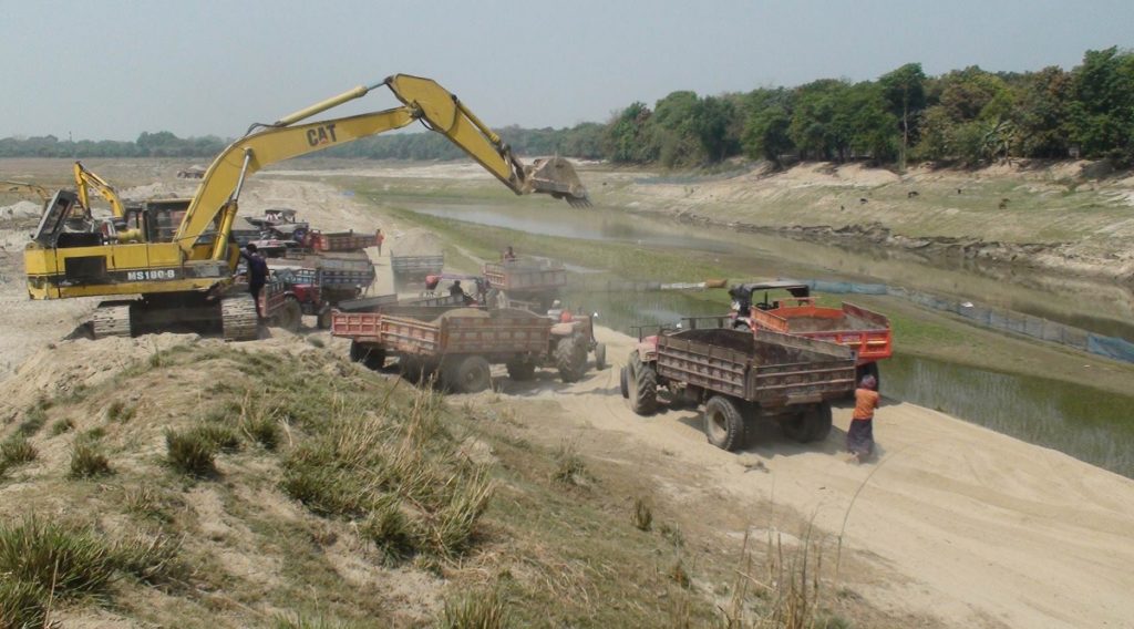 মহানন্দা ও পাগলা নদীর কয়েকটি পয়েন্ট ঘুরে দেখা মিলেছে বালু উত্তোলনের মহোৎসবের। সুন্দরপুর ইউনিয়নের কালিনগর মীরের চর এলাকায় পাগলা নদী থেকে অবৈধভাবে বালু উত্তোলনে একসাথে চলছে ৪টি এক্সক্যাভেটর (খননযন্ত্র)। এসব বালু ট্রাক্টরে করে নিয়ে যাচ্ছে চালকরা। নদীর দুই কিলোমিটার এলাকাজুড়ে প্রকাশ্যে বালু উত্তোলন করা হলেও প্রশাসন কোনো ব্যবস্থা নেয়নি। অবৈধভাবে বালু উত্তোলনের কারণে হুমকিতে পড়েছে পাগলা নদীর ওপর নির্মিত কালিনগর সেতু। এসব বালু ট্রাক্টর দিয়ে পরিবহন করায় নষ্ট হচ্ছে ফসলি জমি ও গ্রামীণ রাস্তা। মুকুলে ভরপুর আমবাগানের ভেতর দিয়ে চলাচল করছে শতাধিক বালু ও মাটি বহনকারী ট্রাক্টর। নদী থেকে অবৈধভাবে বালু উত্তোলনের সঙ্গে জড়িত রয়েছে শক্তিশালী একটি চক্র। এ কারণে স্থানীয়রা প্রকাশ্যে বালু উত্তোলনের বিরুদ্ধে প্রতিবাদ করার সাহস পাচ্ছেন না। এই চিত্র দেখা গেছে মিরের চরা, বাগচর ও সোনারপাড়া ঘাট এলাকায়।