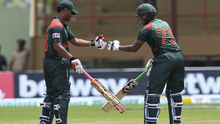 প্রথমে ব্যাটিংয়ে নেমে শুরুটা ভালো হয়নি বাংলাদেশের। ওপেনিংয়ে নেমে লিটন দাস আর ব্যাটিং অর্ডার বদলে মুশফিক-সৌম্য সুবিধা করতে পারেননি। পাঁচ নম্বরে নেমে ম্যাচের গতিপথ বদলে দেন অধিনায়ক সাকিব। তামিমকে সঙ্গে নিয়ে উইন্ডিজদের উপর তান্ডব চালান সাকিব। ৯০ রানের পার্টনারশিপ তাদের। ফিফটি পেয়েছেন ২ বাঁ-হাতি-ই। আন্দ্রে রাসেলের এক ওভারে ২২ রান তুলে তামিম আউট হন ৭৪ রানে তুষ্ট থেকে। এরপর সাকিবের ৩৮ বলে ৬০ আর মাহমুদুল্লার ১৩ রানের ইনিংসে ৫ উইকেটে ১৭১ রান করে বাংলাদেশ। বোলিংয়ে নেমে উইন্ডিজ শিবিরে জোড়া আঘাত হানেন মেস্তাফিজ। এভিন লুইস ও আন্দ্রে রাসেলকে ফেরান ফিজ।