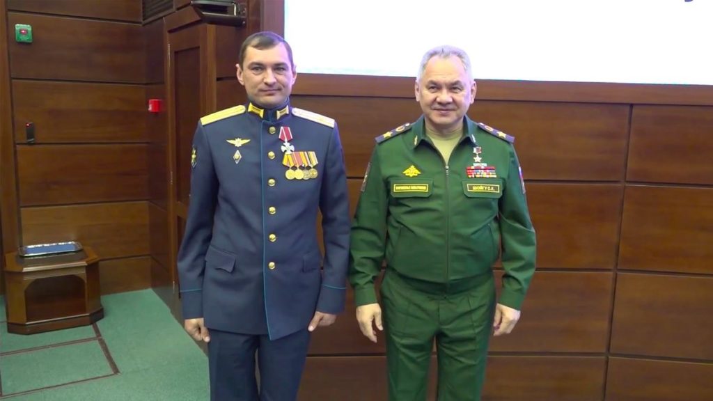 বুধবার (২২ মার্চ) রাজধানী মস্কোয় আয়োজিত এক অনুষ্ঠানে দুই পাইলটকে সম্মানজনক ব্যাজ পরিয়ে দেন দেশটির প্রতিরক্ষামন্ত্রী সের্গেই শোইগু।