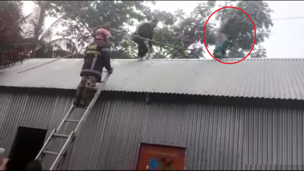 পুলিশের ধাওয়া খেয়ে টিনের চালে উঠে চোরের আত্মহত্যার হুমকি