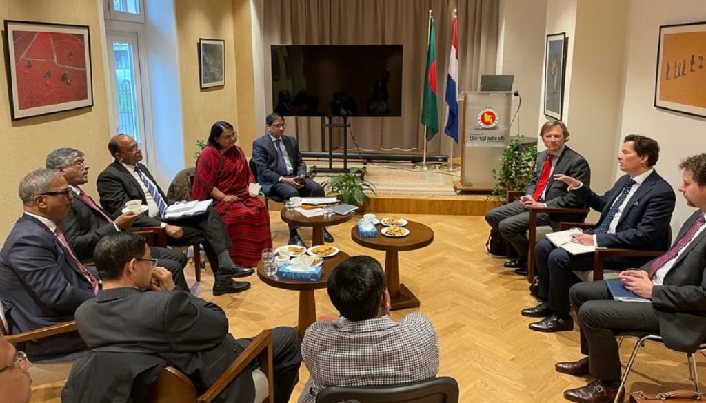 দিনব্যাপী বাংলাদেশ প্রতিনিধি দল ডাচ পররাষ্ট্র মন্ত্রণালয়ে বেশ কয়েকটি বৈঠক করেছে। সেখানে এলডিসি থেকে উত্তরণের পর বাংলাদেশের পোশাক খাতের প্রতি ইইউ-জিএসপি সুবিধার সম্প্রসারণ, বাংলাদেশে বিভিন্ন খাতে রূপান্তরকরণ মূলক প্রকল্প বাস্তবায়নে সহযোগিতাসহ বিস্তৃত বিষয় নিয়ে উভয়পক্ষ আলোচনা করেছে। বদ্বীপ-পরিকল্পনা (ডেল্টা প্ল্যান ২১০০) বাস্তবায়নে বেসরকারি খাতে, বিশেষ করে বাংলাদেশের কৃষির বিভিন্ন খাতে, ডাচ বিনিয়োগে অর্থায়ন সহজতর করতেও আলোচনা হয়।