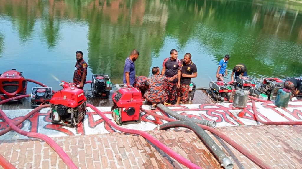 ঢাকা বিশ্ববিদ্যালয়য়ের শহীদুল্লাহ হল ও ফজলুল হক মুসলিম হলের মধ্যবর্তী পুকুর থেকে পাইপের মাধ্যমে নেয়া হচ্ছে পানি। ইতোমধ্যে সাতটি পাইপ লাগিয়ে পানি সংগ্রহ শুরু হয়েছে।