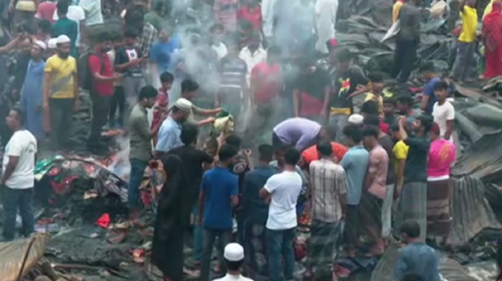 পুড়ে ছাই হওয়া বঙ্গবাজার মার্কেটে কোথাও কোথাও এখনো জ্বলছে আগুন। ভেতর থেকে বের হচ্ছে ধোঁয়ার কুণ্ডলী।