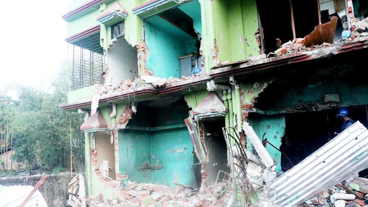জঙ্গিবিরোধী অভিযানের পর বিধ্বস্ত অবস্থায় আতিয়া মহল। ছবি: সংগৃহীত।