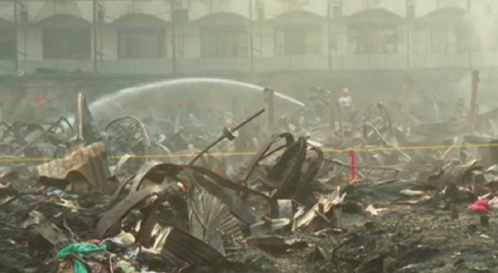 বঙ্গবাজারের ধ্বংসস্তূপের নিচে এখনও মাঝেমধ্যেই জ্বলে উঠছে আগুন। ধোঁয়ায় কিছুটা আচ্ছন্ন হচ্ছে চারপাশ।