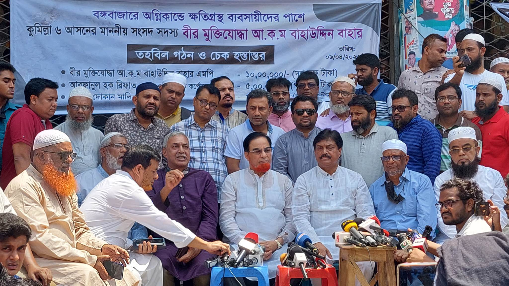 এ সময় এমপি বাহার বলেন, আমাদের নেত্রী প্রধানমন্ত্রী শেখ হাসিনা ব্যবসায়ীদের পাশে দাঁড়ানোর ঘোষণা দিয়েছেন। আমি নিজেও বিবেকের তাড়নায় তাদের পাশে দাঁড়াতে কুমিল্লা থেকে ছুটে এসেছি। আমার আহবানে সাড়া দিয়ে কুমিল্লা জেলা দোকান মালিক সমিতি ও সিটি করপোরেশন পাশে দাঁড়িয়েছেন। আমরা সকলে যদি এই ব্যবসায়ীদের পাশে দাঁড়াই তাহলে তাদের যে ক্ষতি হয়েছে তা পূরণ করা সম্ভব।