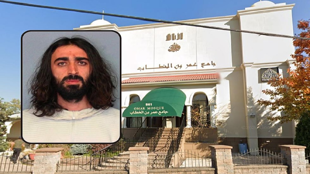 নিউ জার্সির ওমার মসজিদে নামাজ চলাকালীন ইমামের ওপর হামলা চালায় শেরিফ জোরবা (ইনসেটে)।
