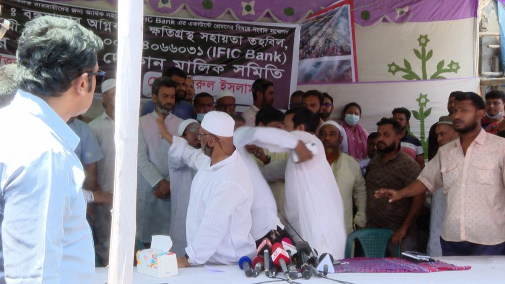 মঙ্গলবার (১১ এপ্রিল) সকালে বঙ্গবাজারে ব্যবসায়ী নেতারা সংবাদ সম্মেলনের আয়োজন করেন। এ সময় মোহসিন কামাল নামে এক ব্যবসায়ী তাদের দখলবাজ বলে অভিহিত করেন। এতে মারধরের শিকার হন তিনি। আশ্রয় নেন পুলিশের কাছে।