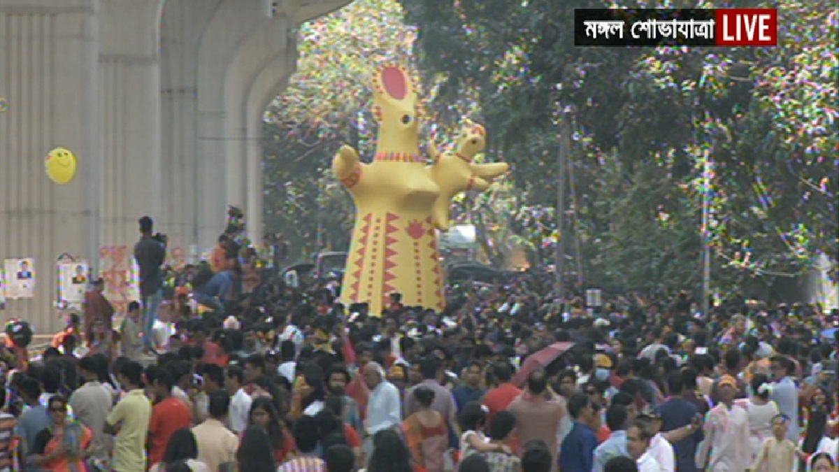 এ বছর ‘বরিষ ধরা-মাঝে শান্তির বারি’ প্রতিপাদ্য নিয়ে চারুকলা অনুষদ থেকে সকাল ৯টায় মঙ্গল শোভাযাত্রা বের করা হয়। মঙ্গল শোভাযাত্রা শাহবাগ মোড় হয়ে টিএসসি হয়ে পুনরায় চারুকলা অনুষদে গিয়ে শেষ হয়। মঙ্গল শোভাযাত্রায় যোগ দিতে সকাল থেকেই চারুকলা এলাকায় জড়ো হন হাজারও মানুষ। সকল ধর্ম-বর্ণ- শ্রেণি বিভেদ মিশে একাকার হয়ে যায় ঢাকা বিশ্ববিদ্যালয় এলাকা। শোভাযাত্রায় আবহমান বাংলার ইতিহাস-ঐতিহ্যের নানা বিষয় স্থান পেয়েছে।