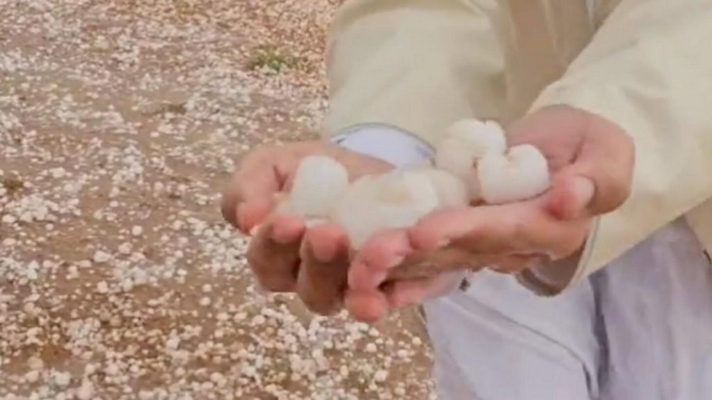 টুইটারে ছড়িয়ে পড়া ভিডিওতে দেখা গেছে, দুই জন ব্যক্তি সেই বৃষ্টিতে নেমে উচ্ছ্বাস করছেন, শিলার টুকরোগুলো সংগ্রহ করে ক্যামেরার সমানে তুলে ধরছেন।