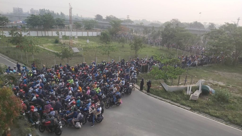 সরেজমিন ঘুরে দেখা গেছে, আজ সকালে পদ্মা সেতুর মাওয়া প্রান্তে অবস্থিত উত্তর থানা সার্ভিস লেন মোটরসাইকেল যাত্রীদের টোল ব্যবস্থাপনার জন্য খুলে দেয়া হয়। সেতু পার হতে এদিন রাত ২টা থেকে বাইকাররা আসতে শুরু করে। সেহরির পর থেকে বাড়তে থাকে চাপ। এ সময়ে তিন থেকে চার হাজার বাইকের সারি সৃষ্টি হয়।