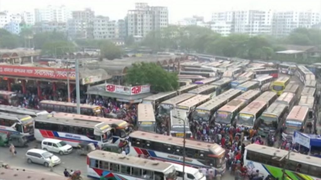 বৃহস্পতিবার (২০ এপ্রিল) রাত থেকেই মহাসড়কে যানবাহনের তীব্র চাপ। শুক্রবার সকালে রাজধানীর বাস টার্মিনালগুলোতে যাত্রীদের উপচেপড়া ভিড় দেখা যায়। শিডিউল বিপর্যয়ের কারণে বাসের জন্য ঘণ্টার পর ঘণ্টা অপেক্ষা করতে হচ্ছে মানুষকে। অতিরিক্ত যাত্রী পরিবহন ও বাড়তি ভাড়া আদায়েরও অভিযোগ করছেন তারা।