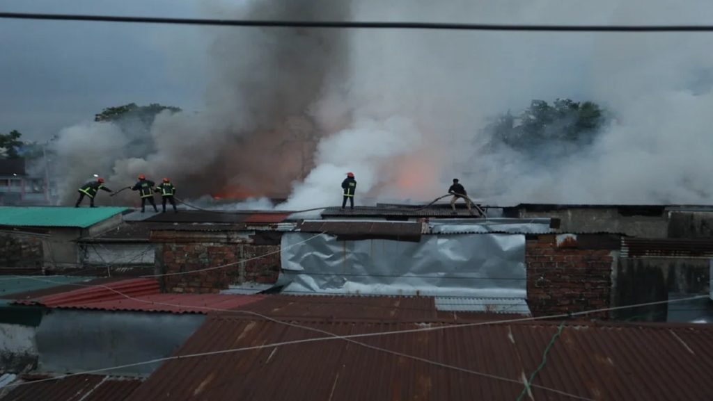 শুক্রবার (২১ এপ্রিল) দুপুর সাড়ে ৩টায় এই অগ্নিকাণ্ডের ঘটনা ঘটে বলে জানা গেছে। প্রচণ্ড ধোঁয়ায় কারণে আগুন নিয়ন্ত্রণে আনতে ফায়ার সার্ভিস কর্মীদের বেগ পেতে হচ্ছে। ঘটনাস্থলে উপস্থিত উৎসাহী জনতাকে নিয়ন্ত্রণে কাজ করছে আইনশৃঙ্খলা বাহিনীর সদস্যরা।