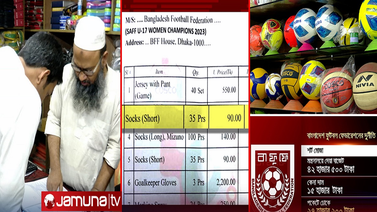 পুরুষ কিংবা নারী, জাতীয় দল কিংবা বয়সভিত্তিক দল- তাদের জন্য বাংলাদেশ ফুটবল ফেডারেশনের অন্যতম পছন্দ গুলিস্তানের স্পোর্টস মার্কেট। অন্ধকার গলিতে লুকিয়ে থাকা এই দোকানই পছন্দের শীর্ষে বাফুফে কর্তাদের। এর কারণটা বেশ সহজ এবং অনুমেয়। সেই অনুমান থেকে হাতে কলমে প্রমাণও উঠে এসেছে যমুনা টেলিভিশনের হাতে। নারী ও পুরুষ দলের দেশীয় ও আন্তর্জাতিক টুর্নামেন্ট ঘিরে প্রতি বছর কোটি কোটি টাকা লোপাট করছে বাফুফের একটি পক্ষ।
