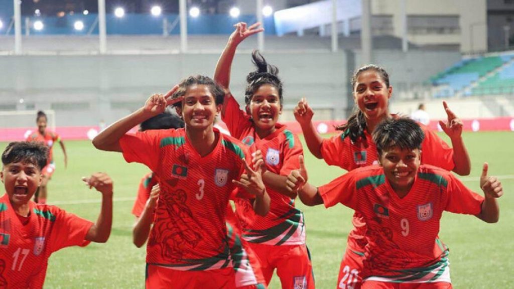 বুধবার (২৬ এপ্রিল) সিঙ্গাপুরের জালান বেসার স্টেডিয়ামে ম্যাচটি অনুষ্ঠিত হয়। খেলার ৫ মিনিটের মধ্যেই ২-০ গোলে এগিয়ে যায় বাংলাদেশ। তৃতীয় মিনিটে পূজা দাস ও পঞ্চম মিনিটে থুইনু মারমা পান গোলের দেখা। ৩৯ মিনিটে রুমা আক্তারের গোলে ৩-০ ব্যবধানে এগিয়ে বিরতিতে যায় লাল-সবুজের জার্সিধারীরা। বিরতির পরও আক্রমণের ধার অব্যাহত রাখে বাংলাদেশ। ৫৩ মিনিটে নিজের জোড়া গোলের পাশাপাশি দলের চতুর্থ গোল করেন থুইনু মারমা। ৬০ ও ৮২ মিনিটে স্পট কিক থেকে বড় জয় এনে দেন সুরভী আকন্দ ও শ্রীমতি কৃষ্ণা।