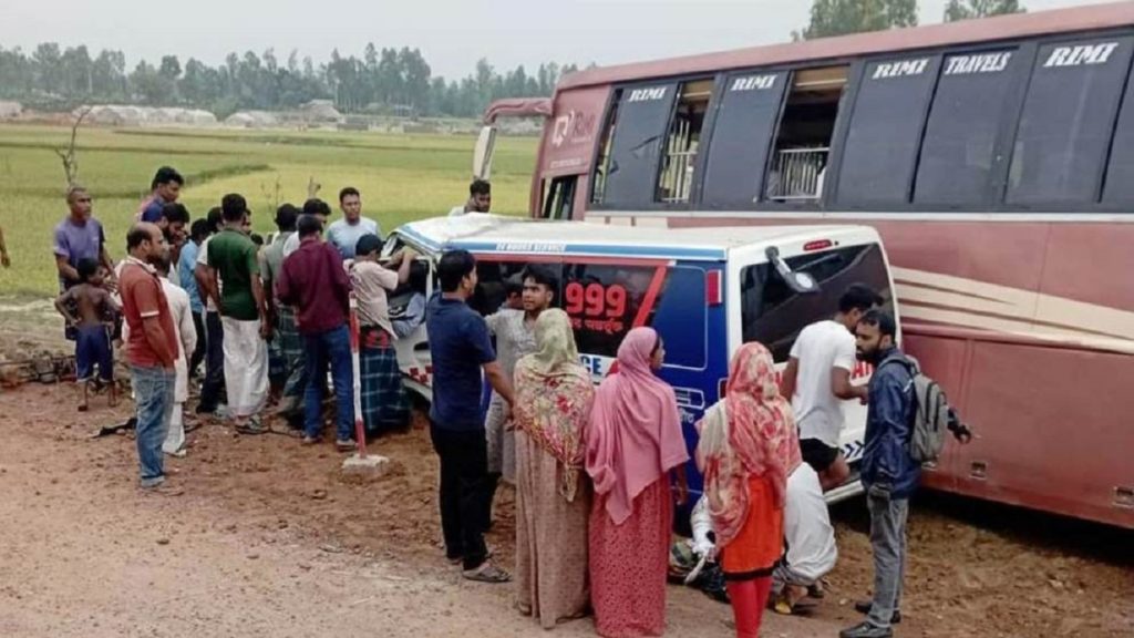 প্রত্যক্ষদর্শীরা জানিয়েছেন, রংপুর থেকে ঢাকা রোগীবাহী অ্যাম্বুলেন্সটি ঘুরকা ব্রিজ এলাকায় পৌঁছালে বগুড়াগামী একটি বাসের সাথে মুখোমুখি সংঘর্ষ ঘটে। এতে ঘটনাস্থলেই অ্যাম্বুলেন্সে থাকা রোগী ও রোগীর স্বজনসহ ড্রাইভার নিহত হন। গুরুতর আহত অবস্থায় তাদের অপর দুই স্বজনকে হাসপাতালে ভর্তি করে স্থানীয়রা। এ ঘটনায় বাসটিকে জব্দ করা গেলেও পালিয়ে গেছে ড্রাইভার ও হেলপার।
