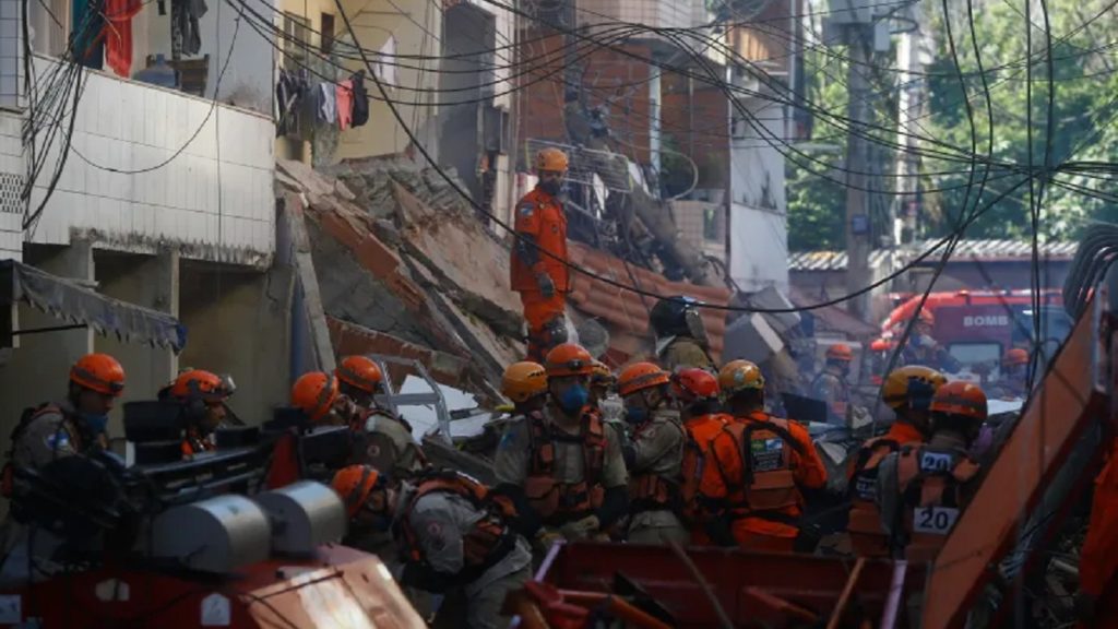 ব্রাজিলে ধসে পড়া ভবন থেকে নাটকীয়ভাবে শিশুসহ চার জনকে উদ্ধার করেছে ফায়ার সার্ভিস। মঙ্গলবার (২ মে) রিও ডি জেনিরোতে ঘটেছে লোমহর্ষক এই ঘটনা। তবে এ ঘটনায় ধ্বংসস্তূপে চাপা পড়ে নিহত হয়েছেন একজন। খবর আল জাজিরার।