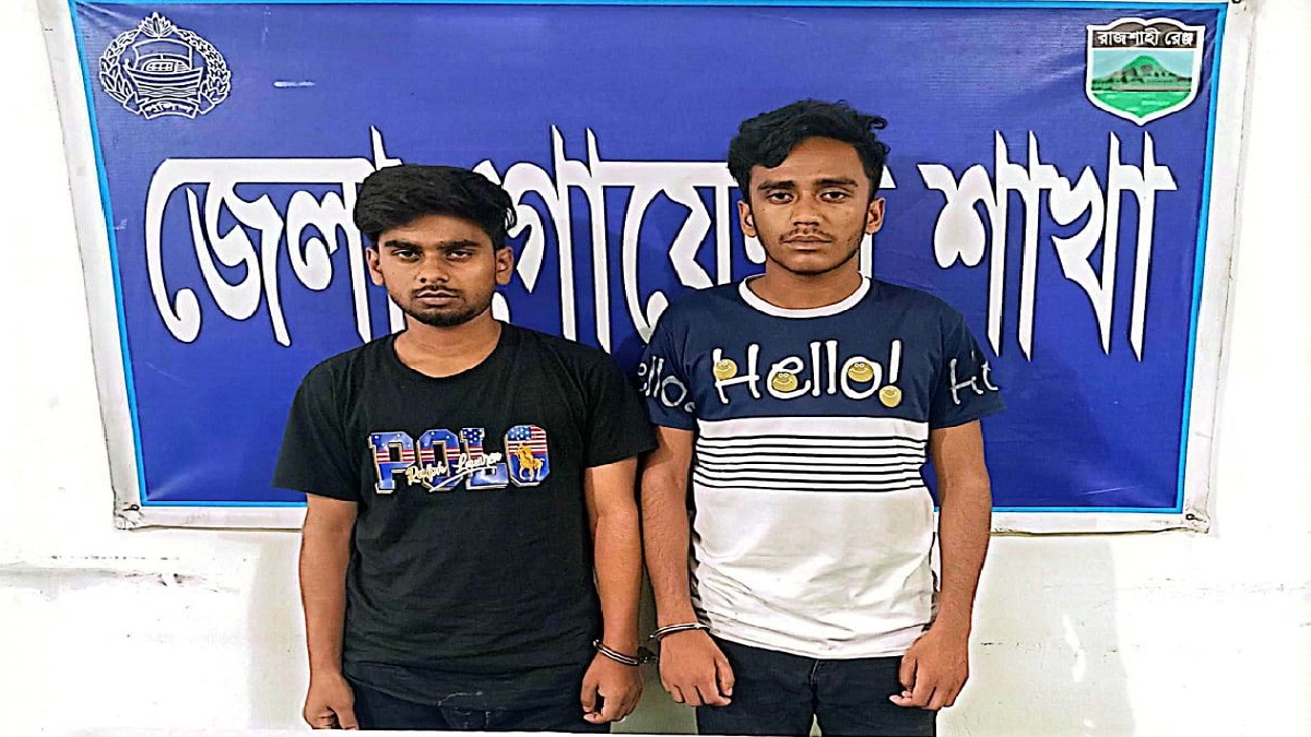 গ্রেফতারকৃতরা হলো- গোমস্তাপুর উপজেলার বোয়ালিয়া ইউনিয়নের ছোট বঙ্গেশ্বরপুর গ্রামের আব্দুস শুকুরের ছেলে হাসিব (২০) ও একই ইউনিয়নের নরশিয়া গ্রামের হাবিবুর রহমানের ছেলে হামিদুর রহমান শান্ত (২০)। রোববার চাঁপাইনবাবগঞ্জ পুলিশ সুপার কার্যালয় থেকে গনমাধ্যমে পাঠানো প্রেস বিজ্ঞপ্তিতে এ তথ্য জানানো হয়।