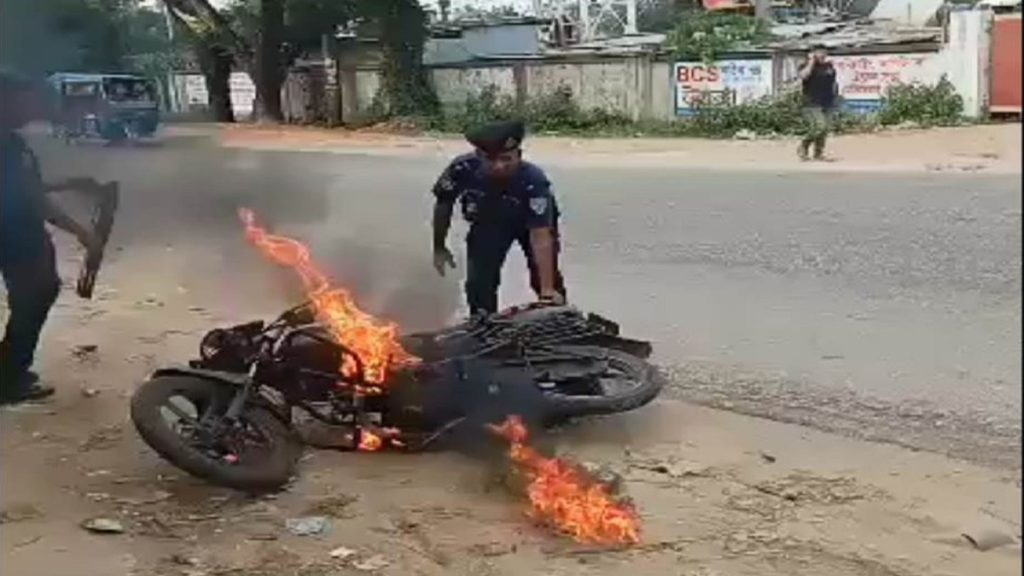 মৌলভীবাজার মডেল থানা পুলিশের ভারপ্রাপ্ত কর্মকর্তা (ওসি) হারুনুর রশীদ চৌধুরী গণমাধ্যমকে জানান, শ্রীমঙ্গল সড়কে একজন নির্বাহী ম্যাজিস্ট্রেট ভ্রাম্যমাণ আদালত পরিচালনাকেলে এক মোটরসাইকেল চালককে জেরা করায় সে নিজের বাইকে নিজেই আগুন ধরিয়ে পালানোর চেষ্টা করে। পরে পুলিশ মোটরসাইকেলটি জব্দ করে থানায় নিয়ে আসে।