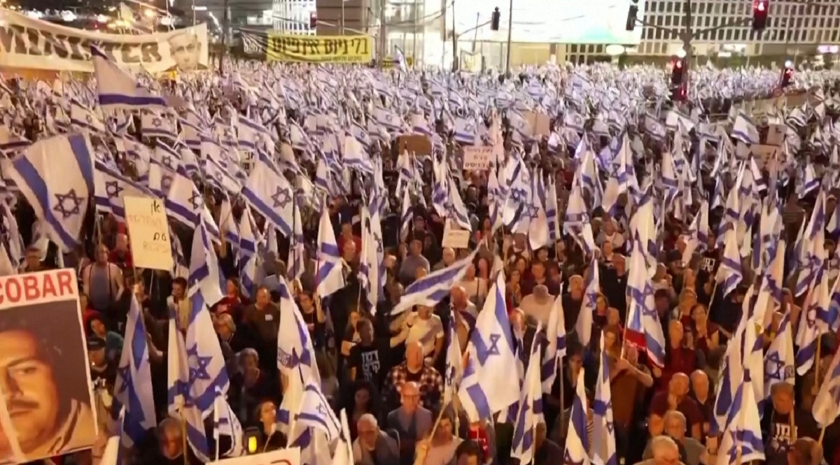 প্রধান চত্বরে হাজির হন লাখো মানুষ। তাছাড়া শহরের গুরুত্বপূর্ণ সব সড়ক অবরোধ করেন ক্ষুব্ধ ইসরায়েলিরা। তারা অবিলম্বে বিচার বিভাগের সংস্কার পরিকল্পনা বাতিলের দাবি তোলেন।