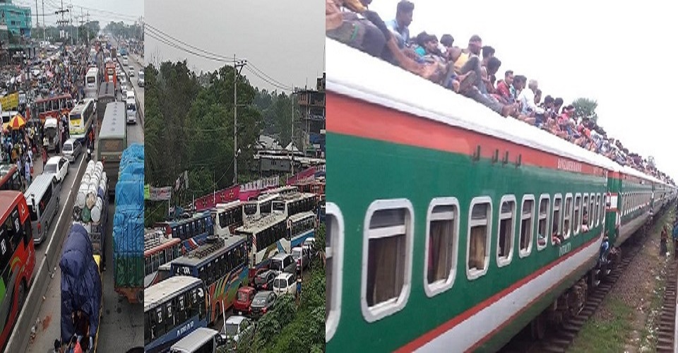 ট্রেনের মতো বাসেও ঘটছে শিডিউল বিপর্যয়। নগরীর বাস টার্মিনালগুলোতেও ঘরমুখো মানুষের উপচেপড়া ভীড়।