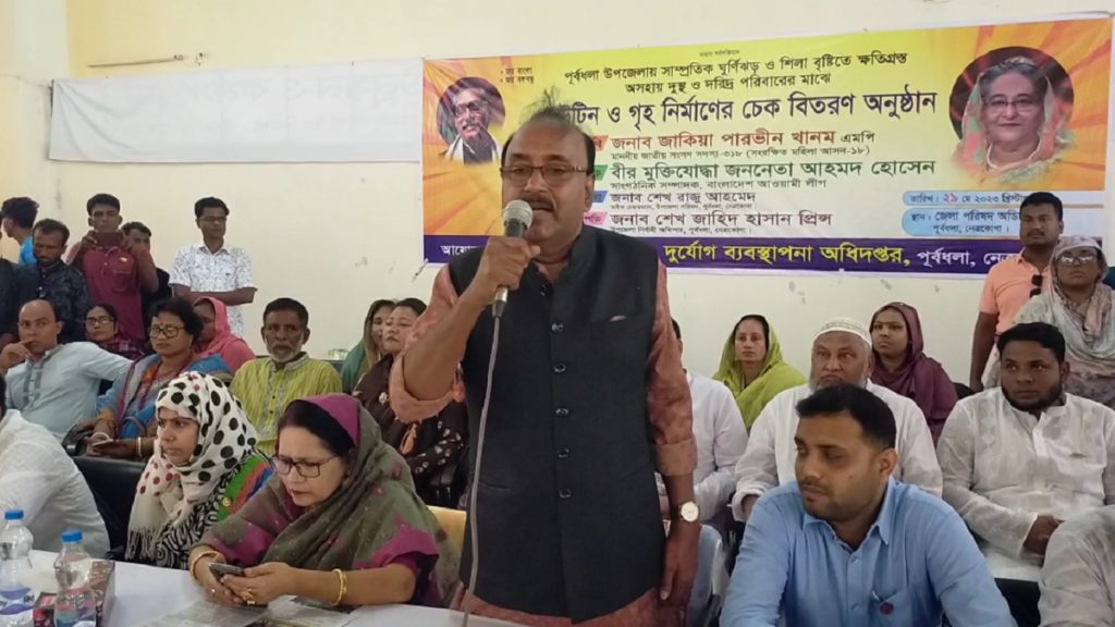 সোমবার (২৯ মে) দুপুরে নেত্রকোণার পূর্বধলা উপজেলায় সাম্প্রতিক ঘূর্ণিঝড় ও শিলাবৃষ্টিতে ক্ষতিগ্রস্ত পরিবারের মাঝে ঢেউটিন ও গৃহ নির্মাণের চেক বিতরণের উদ্বোধনকালে তিনি এসব কথা বলেন।